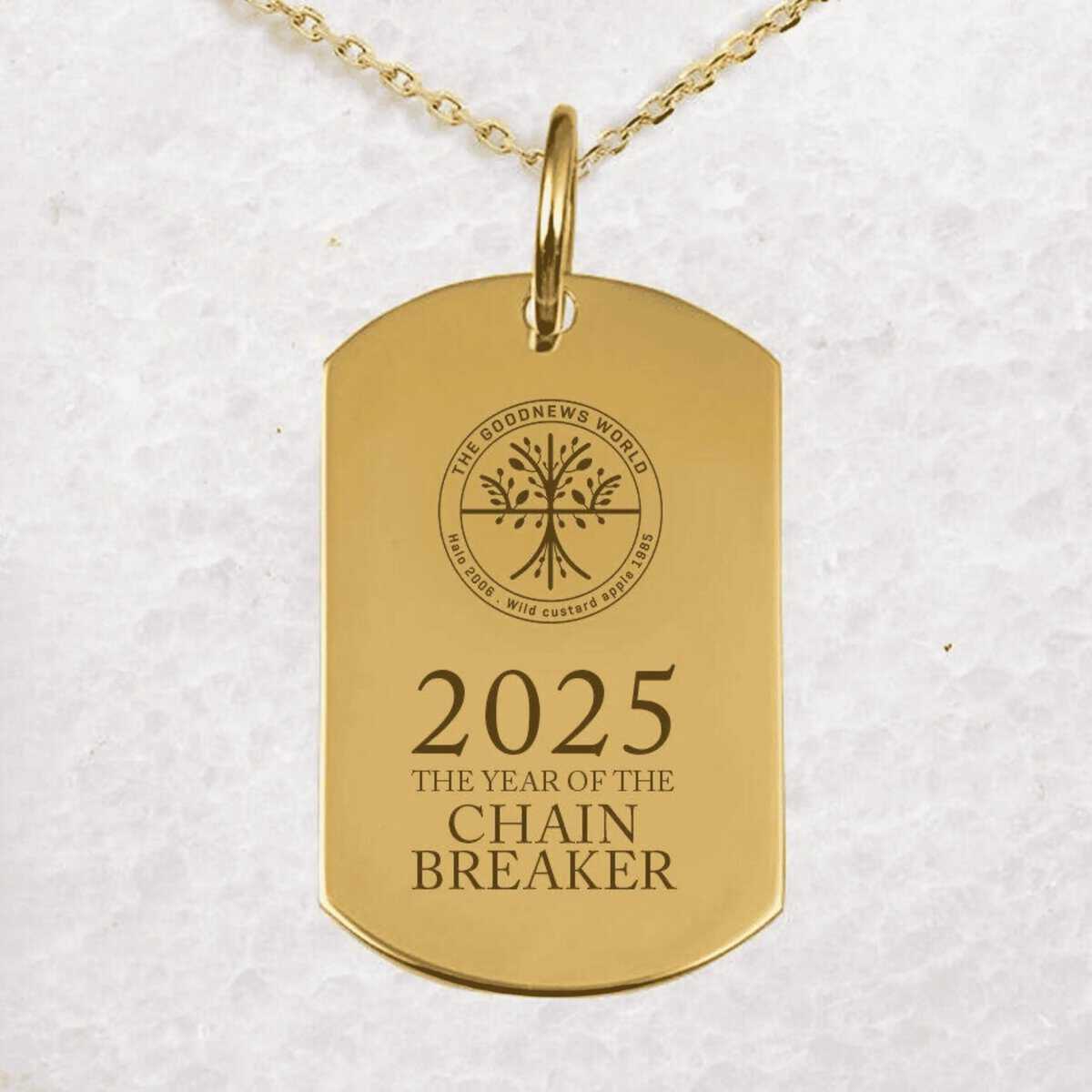 A classy gold chain with a brilliant dog tag pendant, a very nice addition in 2025 The Year Of The Chain Breaker!