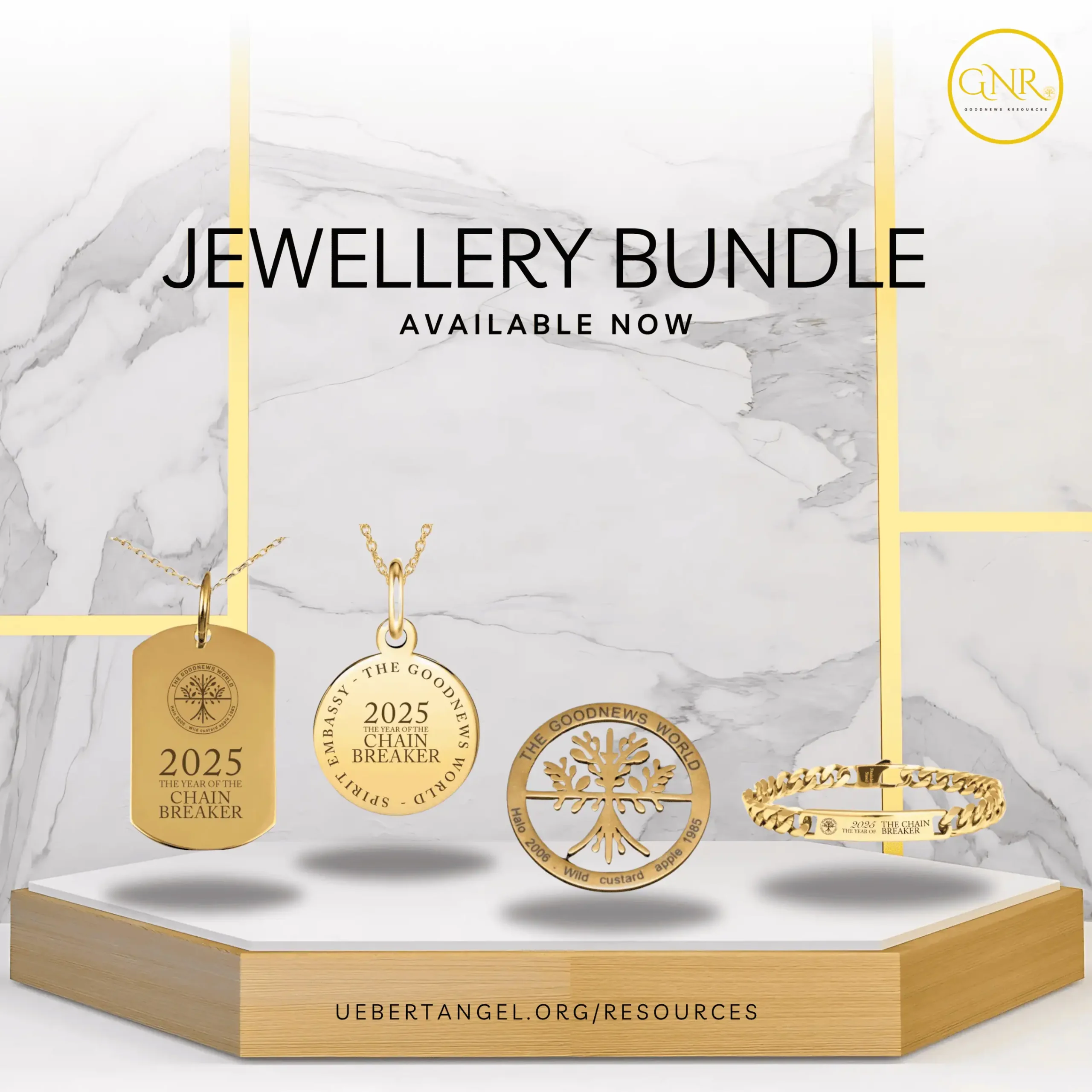 The bundle includes a carefully selected set of versatile pieces, including our Chain Breaker necklaces, bracelets and The GoodNewsWorld Citizen Badge! crafted with high-quality materials to ensure both durability and shine. Whether you’re dressing up for a special event or adding a little flair to your everyday look, this set has everything you need to make a statement. Order now and save!